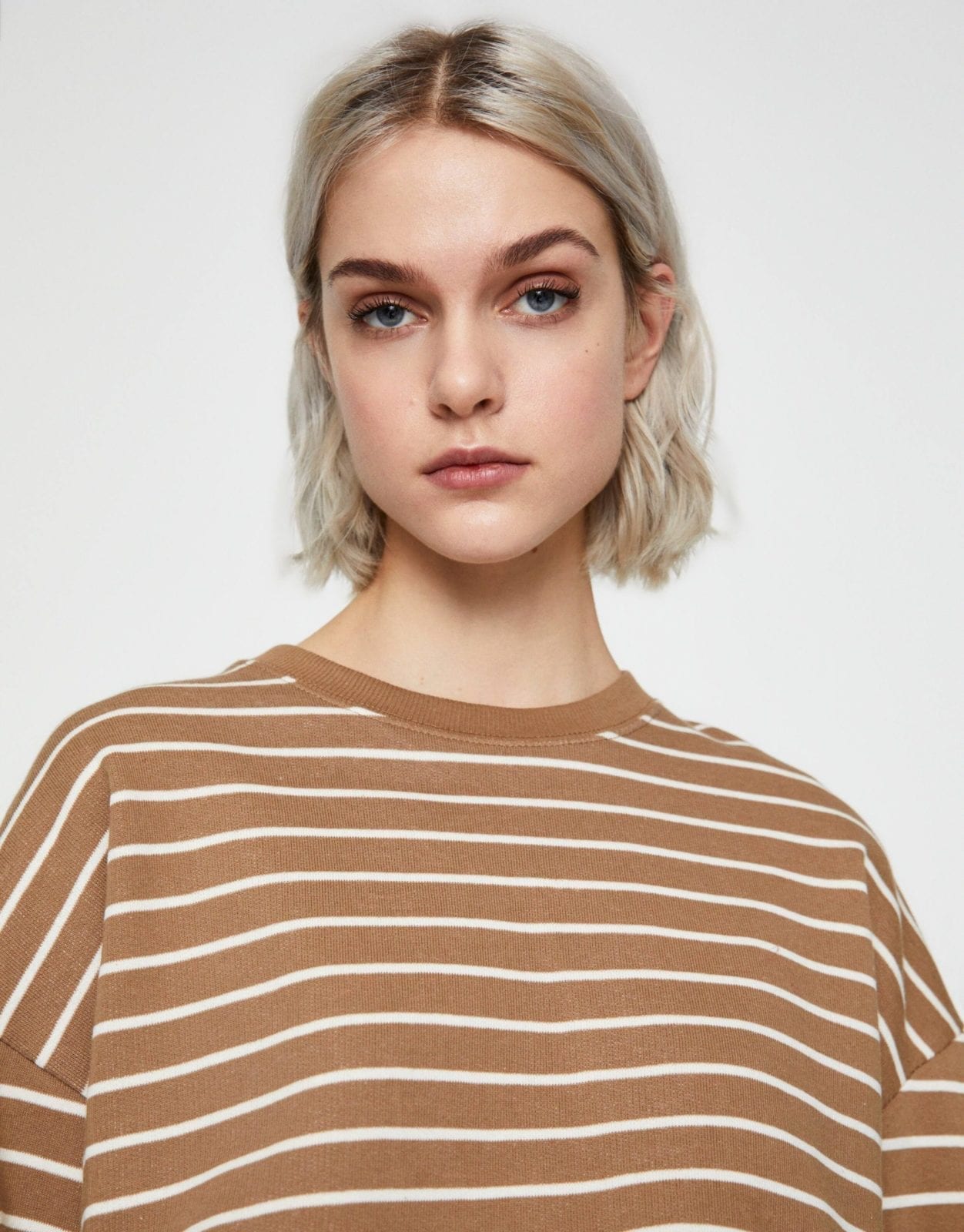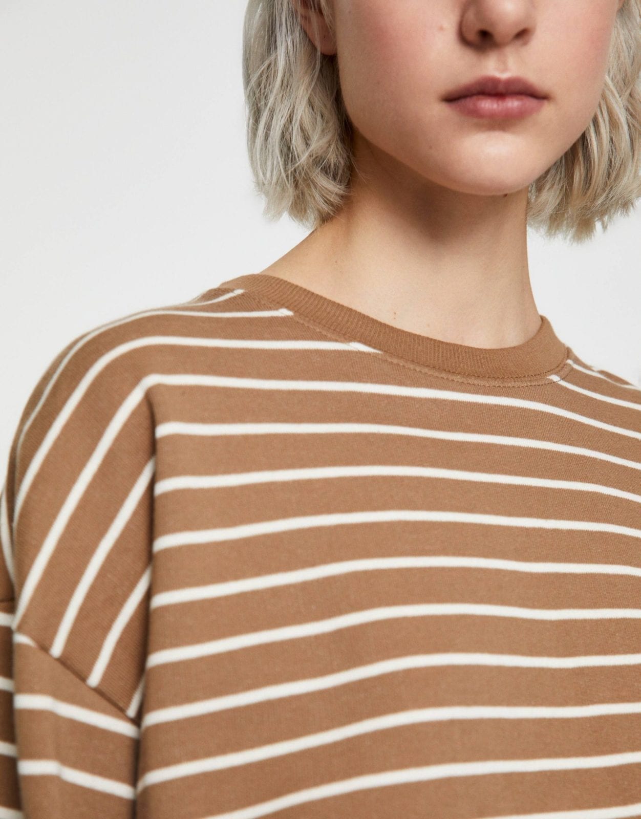 Long sleeve basic striped print sweatshirt with a round neckline. Made of cotton.
