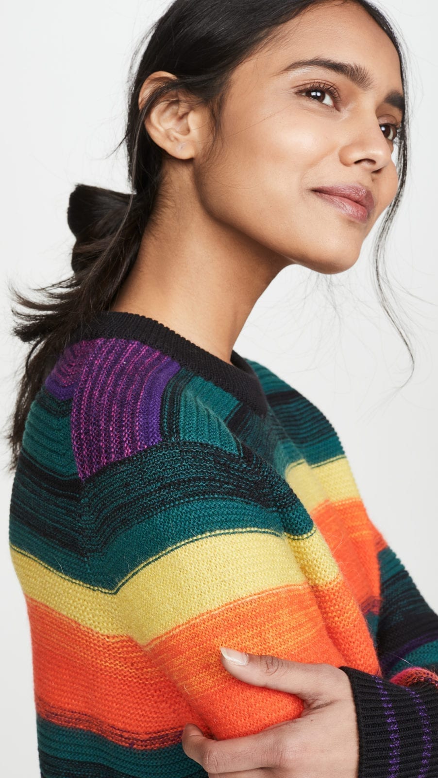 Tibi’s sweatshirt has a unique zipper at the gathered back that pulls in the waist and balances the volume of the cocoon sleeves. Purchase this product on net-a-porter.com